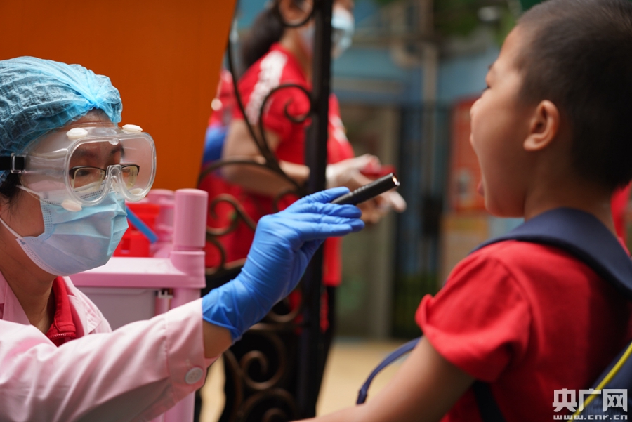 △檢查口腔(央廣記者 鄭澍 攝)