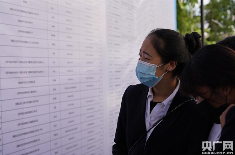 畢業(yè)生在招聘會現場瀏覽崗位信息(央廣網見習記者 卜鵬 攝)