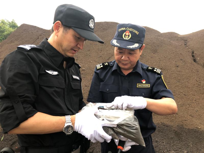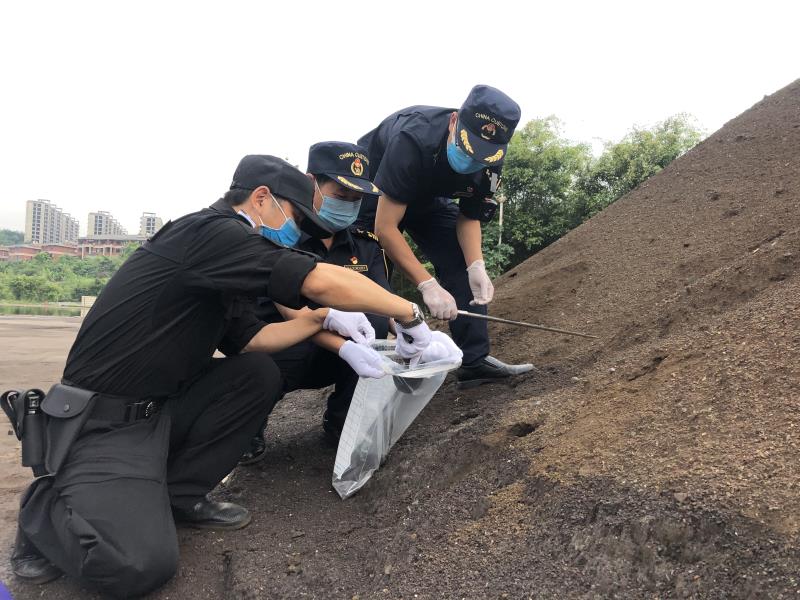 昆明海關(guān)關(guān)警員在對走私入境固體廢物取樣(央廣網(wǎng)發(fā) 昆明海關(guān)供圖)