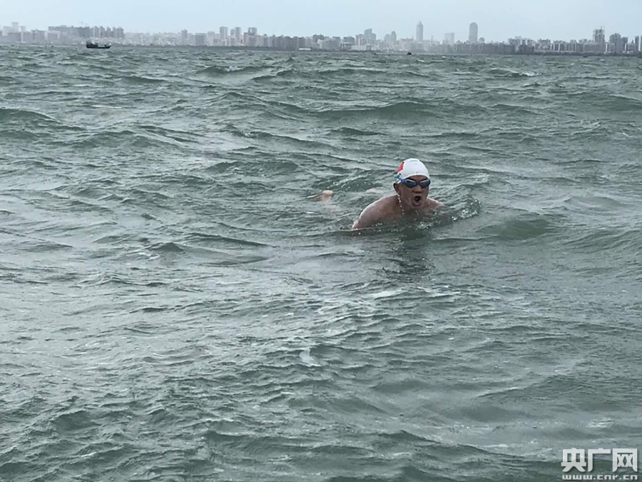 高允銳成為中國以單右臂游泳橫渡瓊州海峽的第一人(央廣網(wǎng)發(fā) 通訊員供圖)
