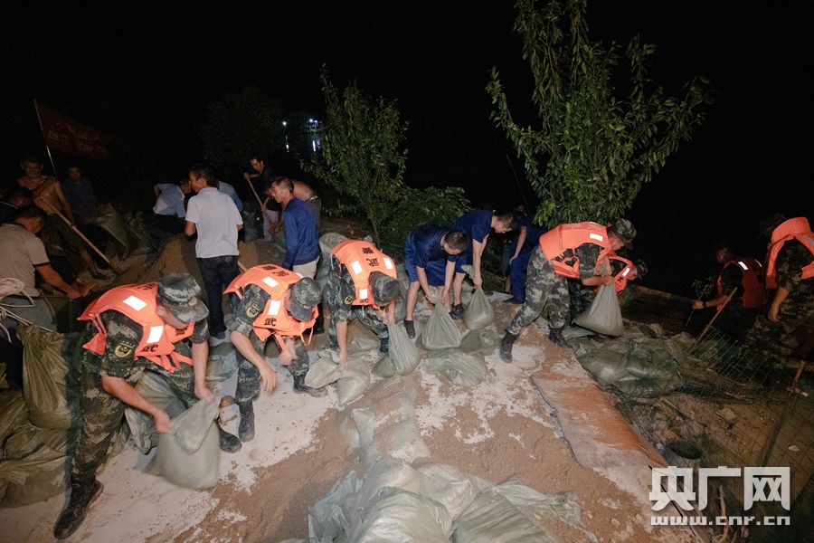 武警官兵連夜接力搬運沙包(央廣網(wǎng)發(fā) 通訊員供圖)