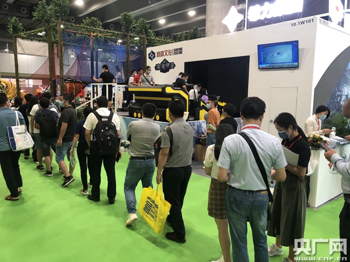 文旅產(chǎn)業(yè)開始復(fù)蘇,展會體驗區(qū)排起長隊(央廣記者何偉奇 攝)