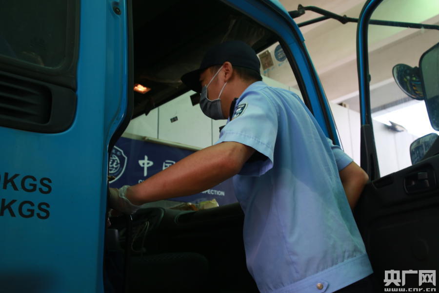 16日正式通車當天,茂盛圍邊檢站根據(jù)執(zhí)勤方案,加派警力,有序高效應對貨車車流高峰。早晨六點整,當班執(zhí)勤民警嚴陣以待,迎接正式通車后第一批經(jīng)跨境口岸入境的供澳鮮活商品貨車。指揮車輛、攀爬貨車、檢查車輛、驗放司機,短短的半個小時下來,民警的手套黑了,后背也全都濕透了,平時酷愛健身的民警小王表示:“上勤半小時,頂過擼鐵一小時!”但他們?nèi)詧猿止ぷ髟诔^35度高溫、充滿貨車尾氣的車道:“雖然工作很辛苦,但是能為貨車司機們提供高效便捷的通關服務,我們覺得很開心!”