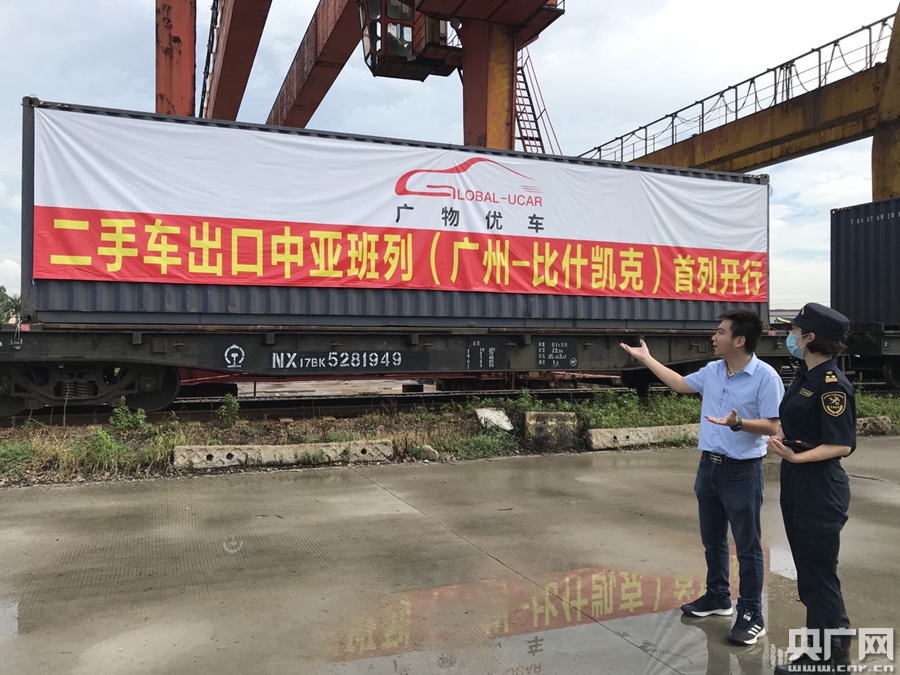 當天下午,隨著一聲汽笛鳴響,在廣州海關所屬廣州車站海關關員完成監(jiān)管手續(xù)后,搭載著首批出口二手汽車的中歐班列從廣州市大朗國際物流基地出發(fā)。這兩部出口二手車為2臺北京現(xiàn)代牌小轎車,其中一臺為2017款北京現(xiàn)代伊蘭特、另一臺為2016款北京現(xiàn)代索納塔,總貨值為10468美元。2臺汽車將搭乘班列開行6900公里,從霍爾果斯口岸出境,預計15天后運抵吉爾吉斯斯坦,在首都比什凱克當?shù)厥袌鲞M行銷售。