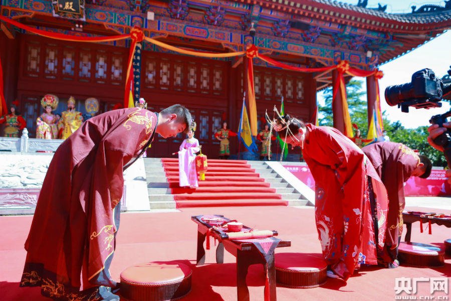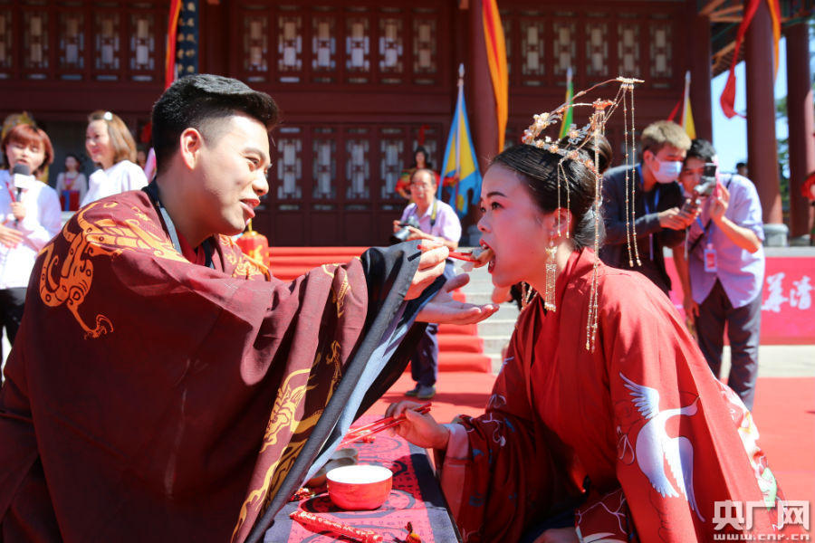 這場特別的“唐宮婚典”根據(jù)傳統(tǒng)唐代婚俗,舉行了跨火盆、過馬鞍、結(jié)發(fā)同心、行同牢禮、拜天地等儀式。西安交大二附院援湖北抗疫國家醫(yī)療隊隊長、西安交大二附院黨委書記鞏守平現(xiàn)場為新人們送上了祝福,西安交大二附院副院長劉原等為新人們頒發(fā)了“最美戰(zhàn)疫情侶”紀念獎杯。