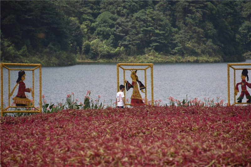 記者看見今屆稻草文化藝術節(jié)占地面積30多畝,一共提供32組稻草造型,還有天池花海相伴,山水相擁、花海無邊,隨手一拍都是大片。稻草造型中,孟母教子傳說、濟公傳說、牛郎織女傳說、皮影戲、中國象棋、中國戲曲......一個個國家級非遺項目用稻草編織而成,生動形象地呈現(xiàn)在游人的面前。主辦方介紹,每一項非物質文化遺產(chǎn)都是人類文明的記憶載體,中國非物質文化遺產(chǎn)十大類別的稻草作品等你一一來揭秘。