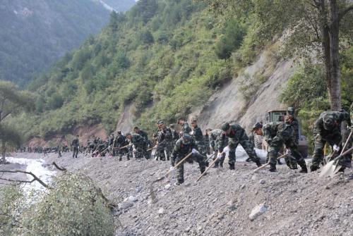 截止8月30日,任務(wù)部隊(duì)已經(jīng)在舟曲縣莫洛村、鐵壩村、舟曲縣藏族中學(xué)、X422縣道4個(gè)任務(wù)區(qū)展開搶險(xiǎn)救災(zāi)行動(dòng),累計(jì)清理路面4650米,加固堤壩900米,疏通清理河道300米,清理房屋19間,清理淤泥532立方米,清理操場(chǎng)200平方米,搶通道路25米。