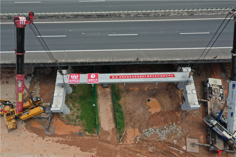 深汕西高速改擴建首片梁架設成功(央廣網(wǎng)發(fā)通訊員供圖)