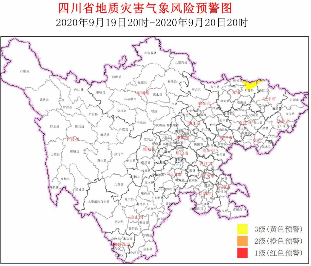 央廣網(wǎng)成都9月19日消息(記者劉濤)結(jié)合四川省氣象臺天氣預(yù)報(bào)情況,四川省地質(zhì)災(zāi)害指揮部辦公室發(fā)布9月19日20時(shí)~9月20日20時(shí),全省地質(zhì)災(zāi)害氣象風(fēng)險(xiǎn)3級黃色預(yù)警。