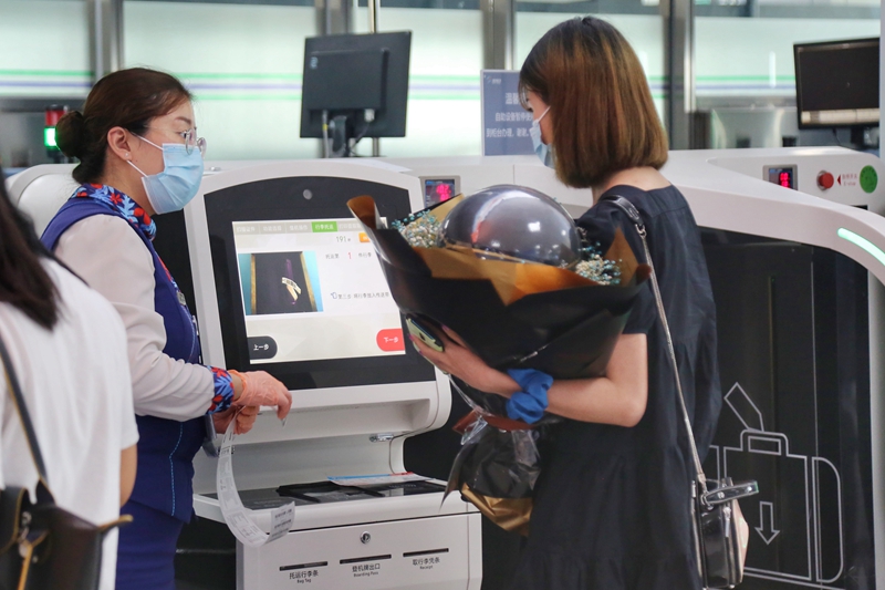 珠海機場工作人員協(xié)助旅客辦理自助托運手續(xù)(央廣網(wǎng)發(fā) 通訊員供圖)