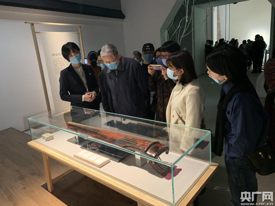 展覽開放首日,觀眾在展廳細細觀察一把古琴(央廣網(wǎng)記者 姜文婧 攝)