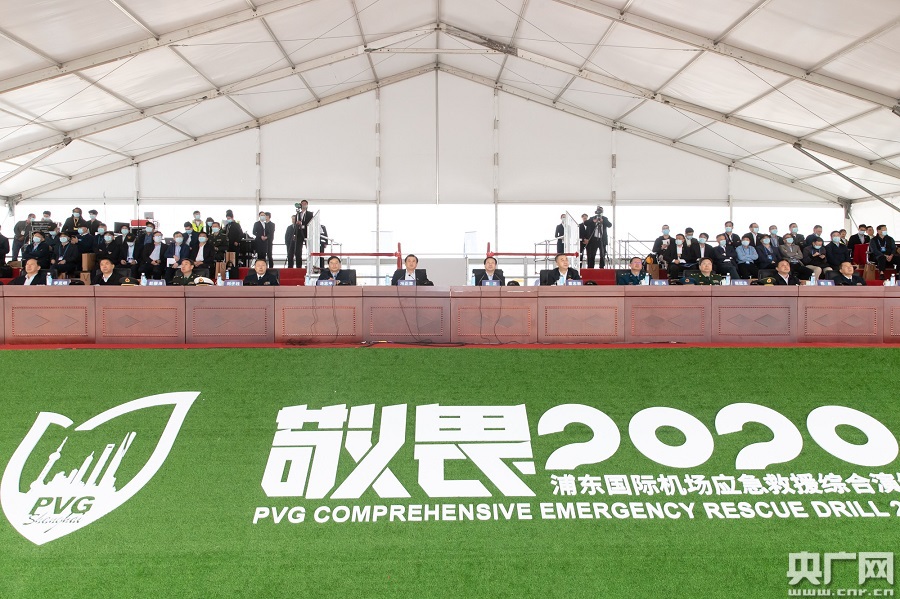 中國民航史上規(guī)模最大的機場應(yīng)急救援綜合演練——“敬畏2020”上海浦東國際機場應(yīng)急救援綜合演練今天(16日)舉行(央廣網(wǎng)發(fā) 浦東機場供圖)