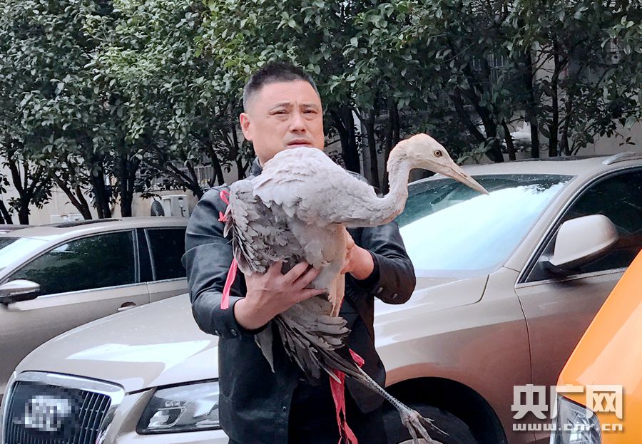 工作人員救助二級保護(hù)動物灰鶴(央廣網(wǎng)發(fā) 通訊員供圖)