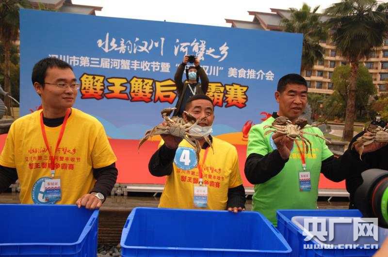 央廣網(wǎng)漢川10月28日消息(記者凌姝 通訊員 郭俊杰)金秋慶豐收,蟹香沁心頭。今天,湖北漢川市第三屆河蟹豐收節(jié)暨“吃在漢川”美食推介會(huì)舉辦。來(lái)自漢江流域15個(gè)城市的120多家農(nóng)業(yè)企業(yè)的河蟹、小龍蝦、鱖魚等優(yōu)質(zhì)水產(chǎn)品以及大米、蔬菜、瓜果等特色農(nóng)產(chǎn)品展銷推介等在內(nèi)的系列活動(dòng)精彩呈現(xiàn),F(xiàn)場(chǎng)評(píng)出今年漢川的蟹王503克,超過(guò)1斤,蟹后為408克。