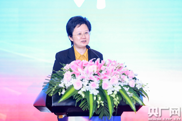 浙江省委網(wǎng)信辦副主任許晴發(fā)表致辭(央廣網(wǎng)記者魏煒 攝)