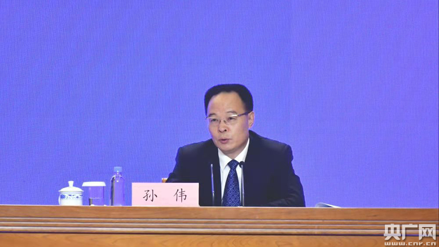 甘肅省委副書記孫偉介紹甘肅產(chǎn)業(yè)扶貧情況(央廣網(wǎng)記者 張磊 攝)