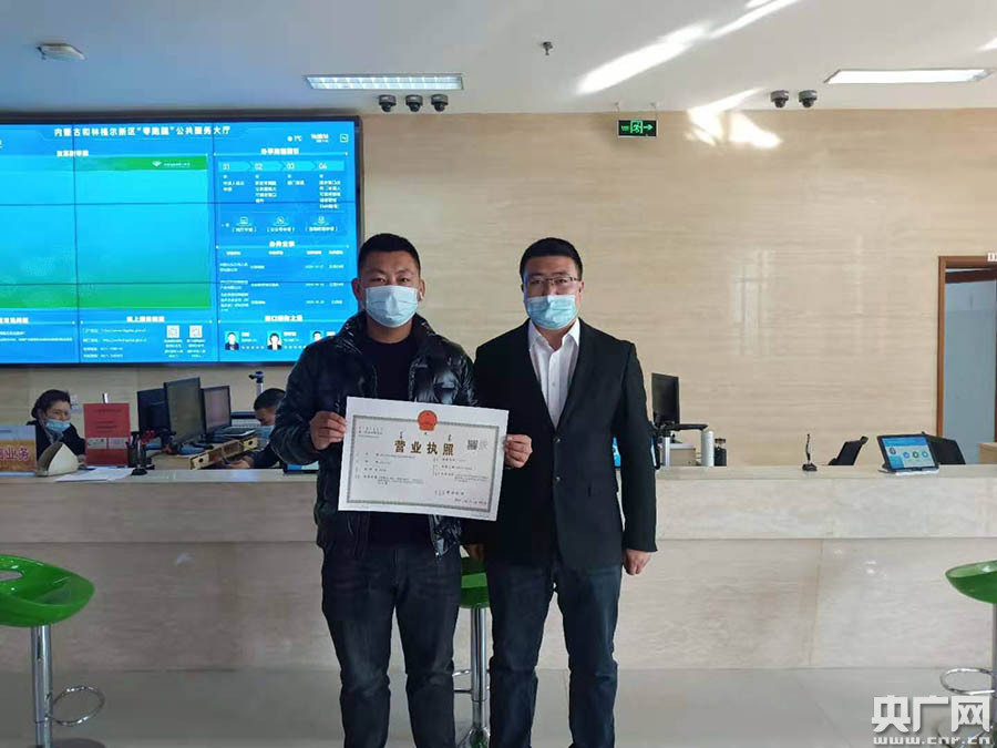 某公司通過(guò)“企業(yè)登記全程電子化”領(lǐng)取營(yíng)業(yè)執(zhí)照(央廣網(wǎng)發(fā) 和林格爾新區(qū)管委會(huì)供圖)
