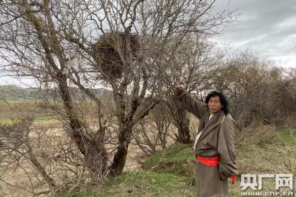 護(hù)林員俄尖澤仁說,這兩年生態(tài)越來越好,管護(hù)林中有了老鷹窩(央廣網(wǎng)記者 王妍 攝)