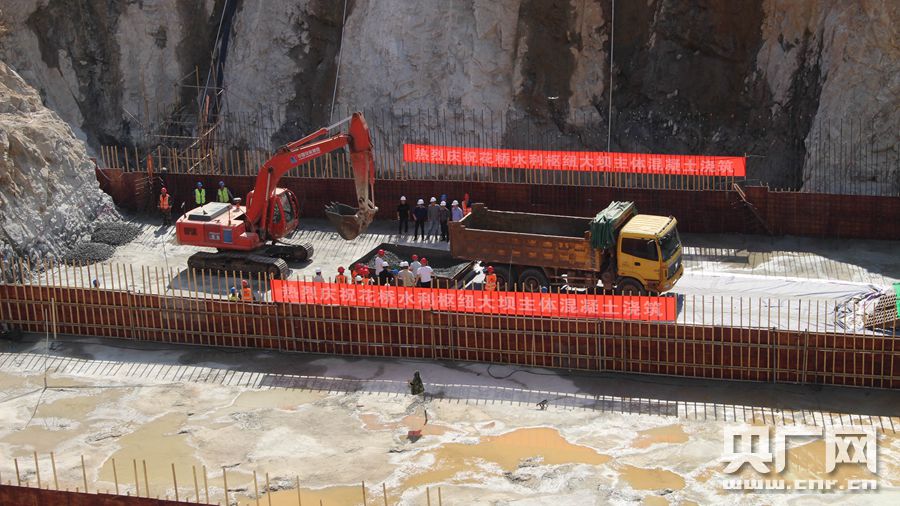 央廣網(wǎng)江西鷹潭11月20日消息(記者謝元森 通訊員徐迎華 曾明洋)11月19日,隨著數(shù)輛自卸車沿300米長的上壩公路駛?cè)牍^(qū),由中國安能第二工程局承建的江西鷹潭花橋水利樞紐工程大壩主體混凝土開倉澆筑。第一倉澆筑混凝土約993立方米,標志著該工程進入主體施工的全新階段。