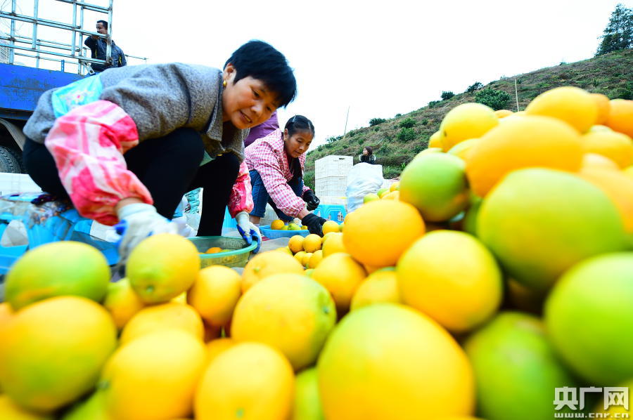 果農(nóng)分揀臍橙(央廣網(wǎng)發(fā) 通訊員供圖)