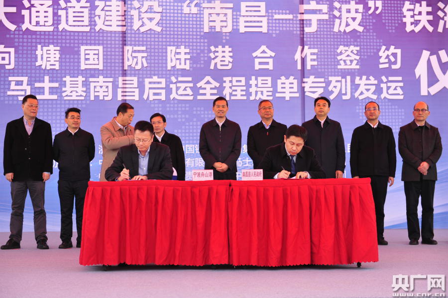 央廣網(wǎng)南昌12月2日消息(記者謝元森 通訊員李慳)12月1日,“贛浙物流大通道建設(shè)‘南昌——寧波’鐵海十周年”慶祝活動(dòng)在江西省南昌向塘國(guó)際陸港鐵路物流基地舉行;顒(dòng)現(xiàn)場(chǎng),南昌縣人民政府與寧波舟山港股份有限公司簽署南昌向塘國(guó)際陸港合作協(xié)議。