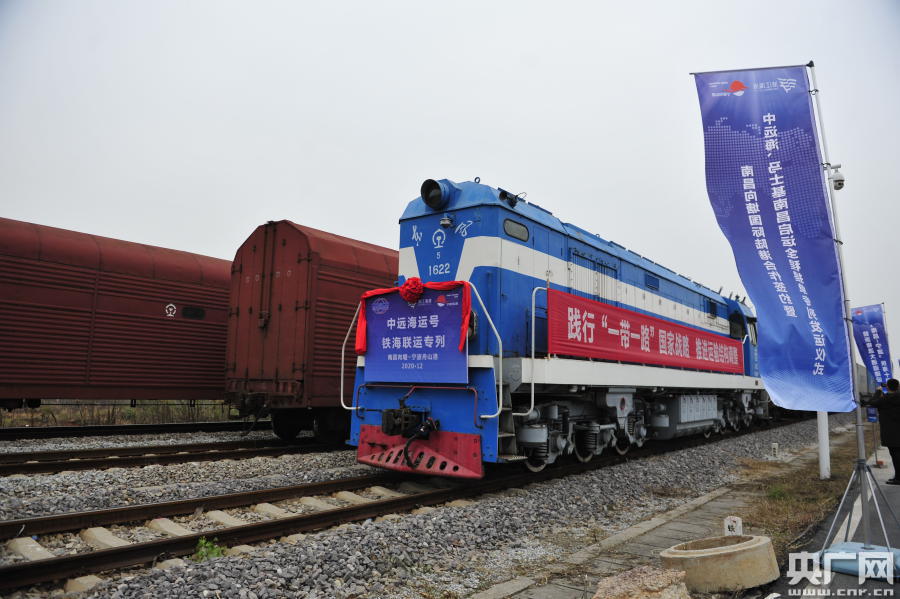 鐵海聯(lián)運(yùn)班列準(zhǔn)備發(fā)往寧波舟山港(央廣網(wǎng)記者 謝元森 攝)