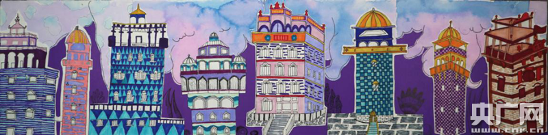 以開平碉樓為創(chuàng)作元素的長卷作品(央廣網(wǎng)發(fā) 通訊員供圖)