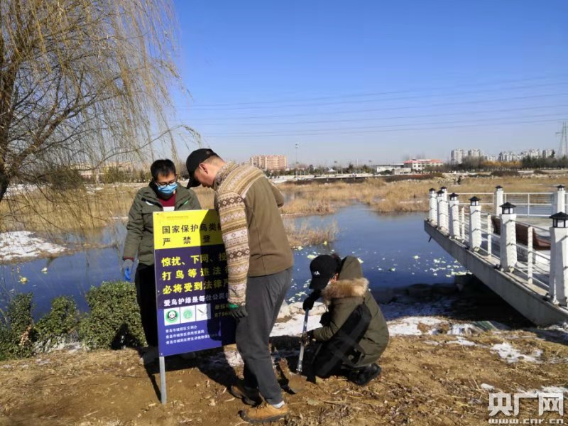 2021年新年元旦,在市民走親訪友家庭歡聚之時,近百名志愿者冒著零下7度嚴寒,沿白沙河夏莊段濕地開展巡護巡視,科普環(huán)保知識,保護濕地生物多樣,放飛前期救護的候鳥,對部分濕地冰封鳥類開展收容救護。