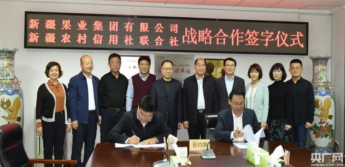 新疆農(nóng)信社與新疆果業(yè)集團(tuán)有限公司簽約合作,并向其授信50億元(央廣網(wǎng)發(fā) 通訊員劉大為 攝)