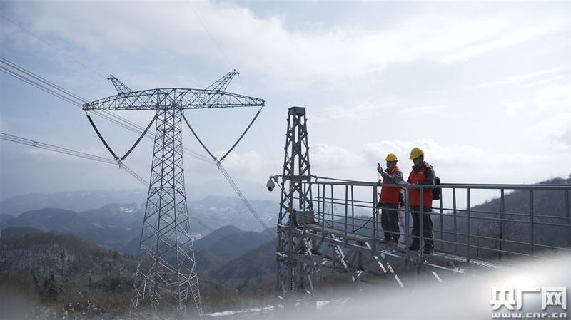央廣網(wǎng)重慶2月10日消息(記者趙聰聰 通訊員李濤 鄧毅)2月9日,離除夕還有兩天,重慶巫山騾坪鎮(zhèn)大埡村,雪花飛舞,銀裝素裹。國(guó)網(wǎng)重慶檢修公司輸電運(yùn)檢員工李相如和同事周良艱難走到±800千伏祁韶線3417號(hào)塔下,仔細(xì)檢查完塔身基礎(chǔ)后,嫻熟地操縱無(wú)人機(jī),對(duì)鐵塔上的線路、瓷瓶、塔材等設(shè)備覆冰情況進(jìn)行全面巡檢。