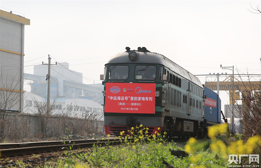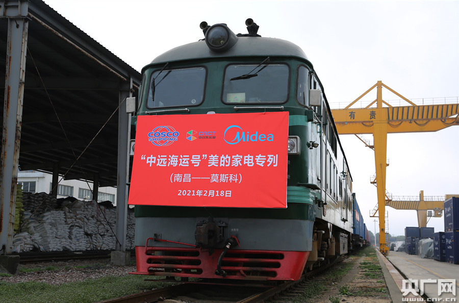 央廣網(wǎng)南昌2月18日消息(記者謝元森 通訊員李翔 周娜)2月18日,滿載50車洗衣機、洗碗機等電器的中歐班列專列由南昌(向塘)國際陸港橫崗站駛出,預計15天后抵達俄羅斯莫斯科。這也是江西省開行中歐班列以來,首次為家電企業(yè)開行的出口專列,班列貨價約148萬美元。