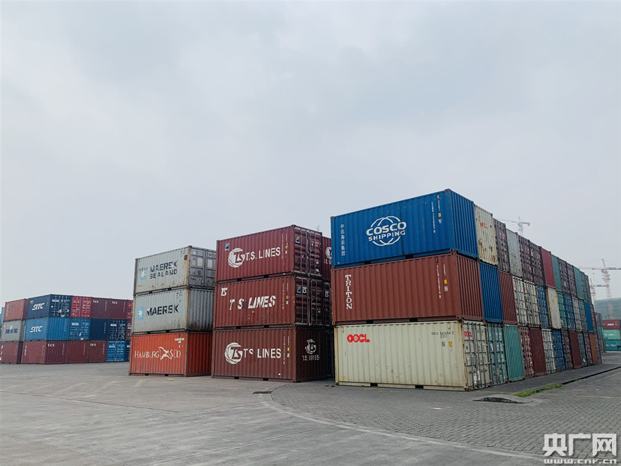 寸灘港整齊排列的集裝箱(央廣網(wǎng)記者 趙聰聰 攝)