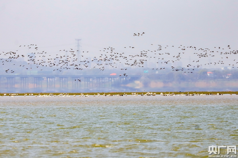 鄱陽湖候鳥集結(央廣網(wǎng)發(fā) 通訊員供圖)