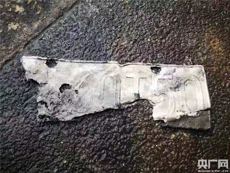 現(xiàn)場殘缺的車牌(央廣網(wǎng)發(fā) 南昌消防提供)