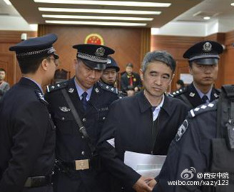 法警將被告人廖少華帶出法庭。據西安中院微博