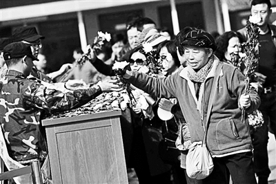 市民領(lǐng)取鮮花文明祭掃