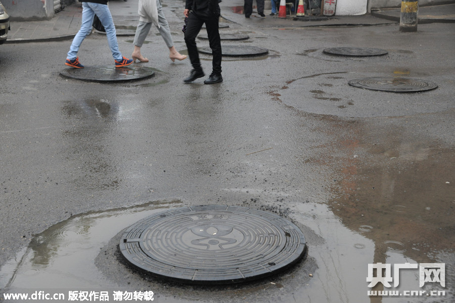 2015年4月28日,山東濟(jì)南,在濟(jì)南歷下區(qū)縣東巷中段,數(shù)十井蓋被拔高,由于密集排在路上,放學(xué)回家的家長騎車帶著孩子途徑此路,都要拐來拐去躲避障礙,如同考駕!奥房肌。一位家長稱,此路附近有兩所學(xué)校,每天有數(shù)百學(xué)生要途徑此路上學(xué),雖然天氣暖和后,到了路面和橋面修缺補(bǔ)坑的時(shí)候,但放學(xué)路上存在安全隱患。