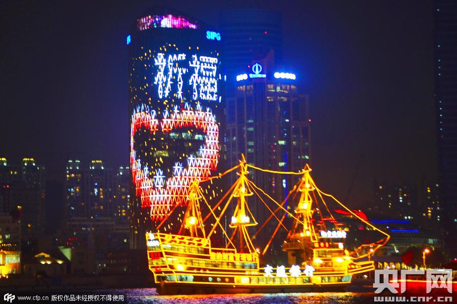 央廣網(wǎng)上海8月18日消息 今天是天津8·12瑞海;穫}(cāng)庫(kù)火災(zāi)爆炸重特大事故中發(fā)生的第七天,上海北外灘一高樓墻體巨屏打出了“祈福天津”的字樣,為天津同胞祈福。