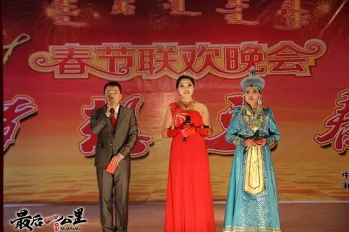 烏仁圖雅(右一)在主持和什托洛蓋鎮(zhèn)春節(jié)聯(lián)歡晚會