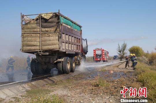 中新網(wǎng)烏魯木齊10月2日電 (周繼成 石忠喜)10月2日12時(shí)30分許,位于新疆阿勒泰布爾津縣前往喀納斯景區(qū)方向長征路口一輛柴油雙橋貨車著火,車上載有大量草料,火災(zāi)現(xiàn)場(chǎng)造成百余輛前往喀納斯景區(qū)的車輛滯留。