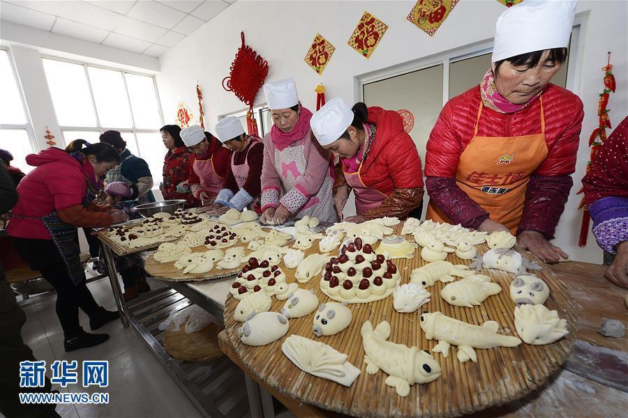 1月30日,在山東省日照市莒縣浮來(lái)山鎮(zhèn)田家店子村老年公寓,村民們?cè)谥谱骰x。春節(jié)臨近,人們開(kāi)始加緊準(zhǔn)備年貨,各地張燈結(jié)彩,到處洋溢著節(jié)日的氣息。 新華社發(fā)(陳為峰 攝)