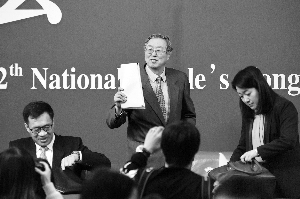 十二屆全國(guó)人大四次會(huì)議12日在北京梅地亞中心舉行記者會(huì),中國(guó)人民銀行行長(zhǎng)周小川,副行長(zhǎng)易綱、潘功勝、范一飛等就“貨幣政策是否調(diào)整”“如何看待首付貸”“互聯(lián)網(wǎng)金融監(jiān)管”等熱點(diǎn)問(wèn)題回答了中外記者提問(wèn)。
