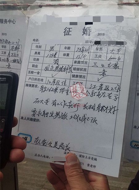 武漢4旬男子征婚啟事:我爸是局長 你要能生男孩