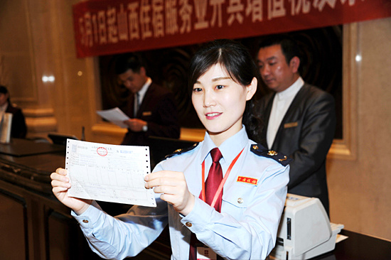 【山西】5月1日凌晨0時(shí)01分,太原市湖濱國(guó)際大酒店開(kāi)出山西省住宿業(yè)第一張?jiān)鲋刀悓S冒l(fā)票,票面金額830元,稅額為46.98元。山西省政府領(lǐng)導(dǎo)現(xiàn)場(chǎng)見(jiàn)證了首張發(fā)票的開(kāi)具,標(biāo)志著全面營(yíng)改增試點(diǎn)在我省順利落地。