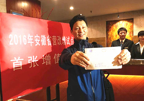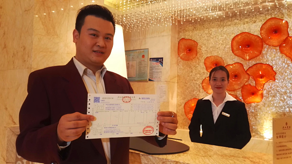 【河南】5月1日零點(diǎn),在鄭州綠地JW萬(wàn)豪酒店,河南省全面推開(kāi)營(yíng)改增試點(diǎn)納稅人首張?jiān)鲋刀惏l(fā)票順利開(kāi)出,來(lái)自盧森堡貨運(yùn)航空公司鄭州代表處的MichaelNeuhuber先生幸運(yùn)地成為這張001號(hào)增值稅發(fā)票的擁有者,標(biāo)志著河南省全面推開(kāi)營(yíng)改增試點(diǎn)改革大幕拉開(kāi)。