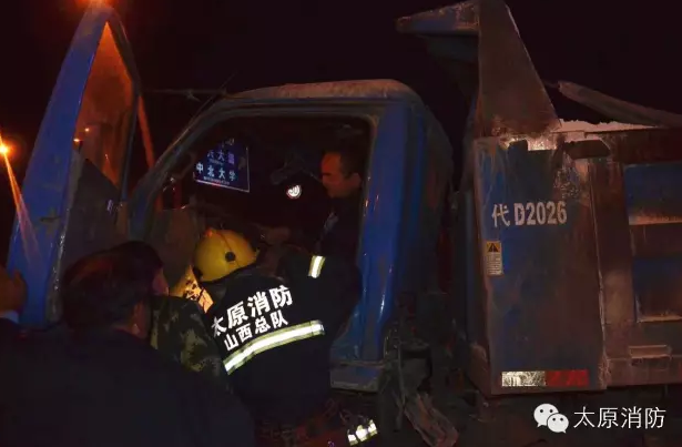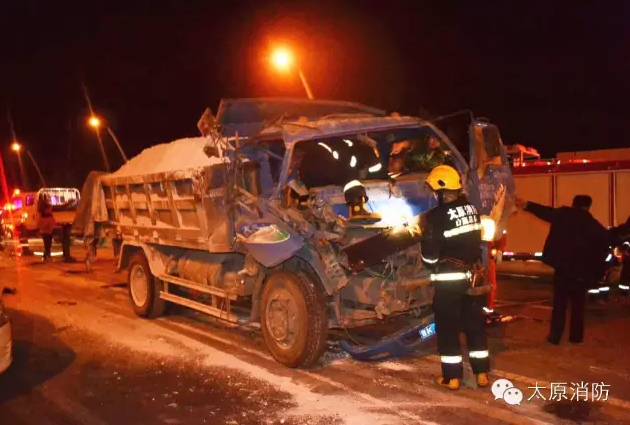 車禍的起因?yàn)橐惠v車逆行。事故發(fā)生后,其中一輛貨車的司機(jī)被困。 太原市公安消防支隊(duì)柴村中隊(duì)官兵迅速到達(dá)現(xiàn)場(chǎng),當(dāng)時(shí)貨車司機(jī)被困駕駛室內(nèi),意識(shí)已經(jīng)開始模糊,如果不及時(shí)搶救,很可能有生命危險(xiǎn)。指揮員立即命令警戒組兩名官兵對(duì)周圍進(jìn)行現(xiàn)場(chǎng)警戒,救援組官兵利用液壓破拆工具及鐵鋌等對(duì)駕駛室車門、座位等部位進(jìn)行破拆。