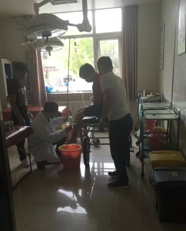 醫(yī)生正在給輕傷患者清理傷口