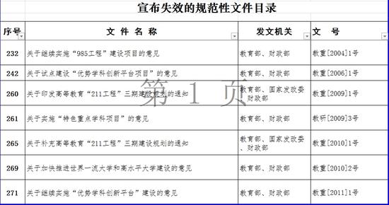 日前,教育部宣布失效一批規(guī)范性文件,其中包括《關(guān)于繼續(xù)實施“985工程”建設(shè)項目的意見》《關(guān)于補充高等教育“211工程”三期建設(shè)規(guī)劃的通知》《關(guān)于實施“重點特色學科項目”的意見》《關(guān)于繼續(xù)實施“優(yōu)秀學科創(chuàng)新平臺”建設(shè)的意見》等文件。