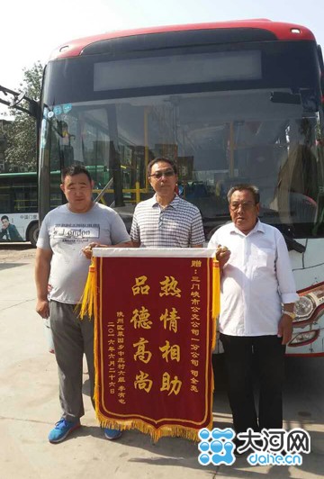 大河網(wǎng)訊 6月29日,三門峽市陜州區(qū)菜園鄉(xiāng)中莊村村民李有屯將一面繡有“熱情相助、品德高尚”的錦旗送到市公交公司,感謝4路公交車駕駛員司全亮對家人的救助。