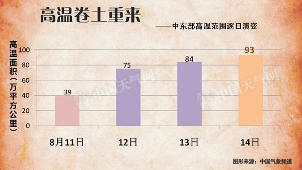 今天開始,我國中東部地區(qū)高溫范圍將逐漸增大。